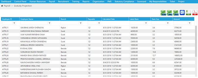- Gratuity Employee Information