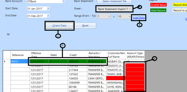 F: The “Green” and “Red” colour signify any error or show that your column is valid after importing the bank statement.