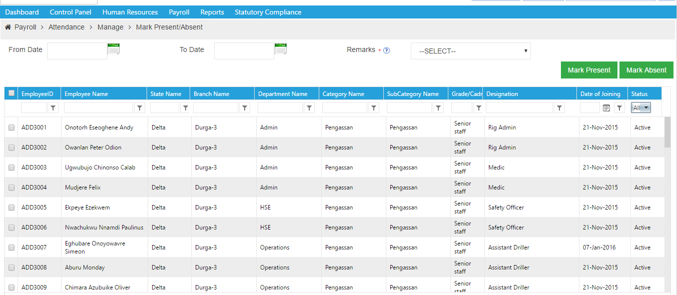 - Attendance month setup to take into account the cut-off provision- pay salary on date 1st of every month e.t.c