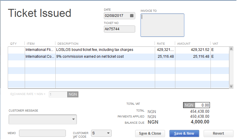 The invoice above depicts how a typical transaction import from Amadeus ticket feed the relevant parameters into QuickBooks without a manual intervention.